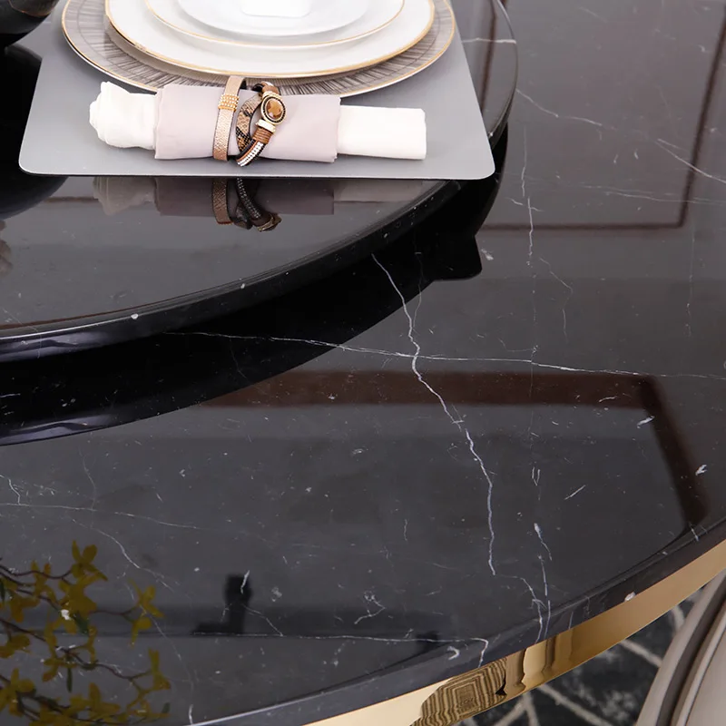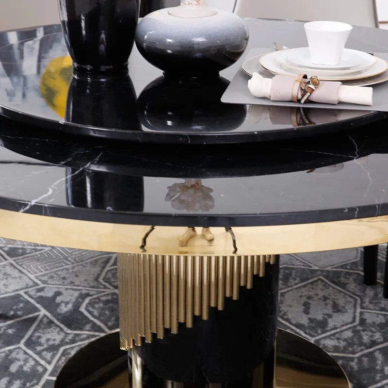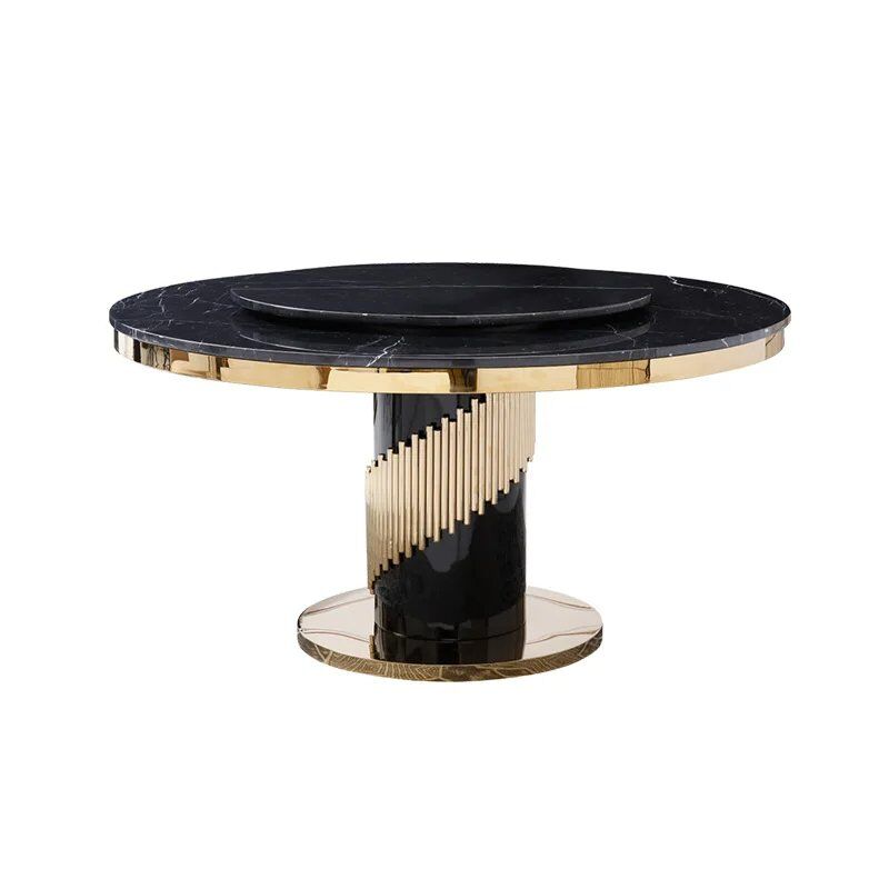 Addison Round Marble Dining Table – DotFurn (140cm, Black Marble Top, Gold Stainless Steel Base)
