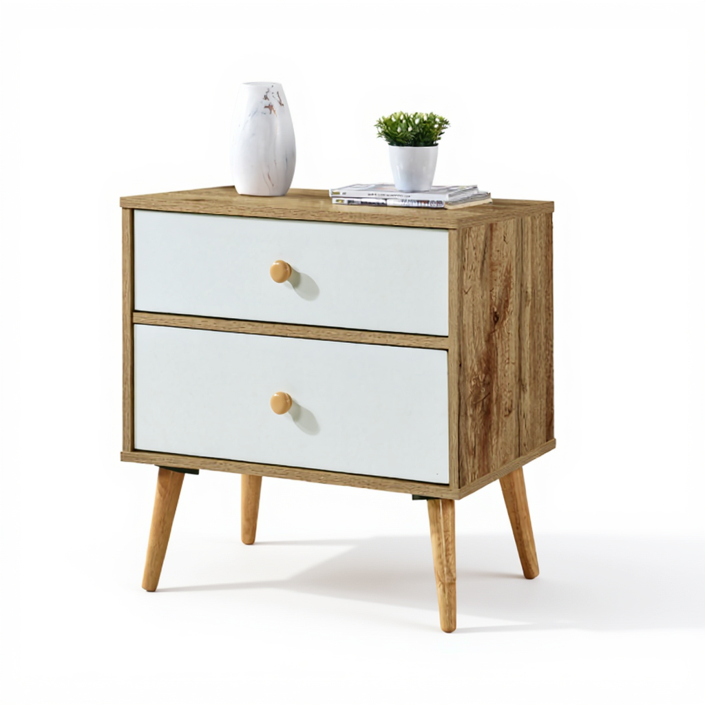 Adriana Bedside Table – Oak | Scandinavian 2-Drawer Nightstand