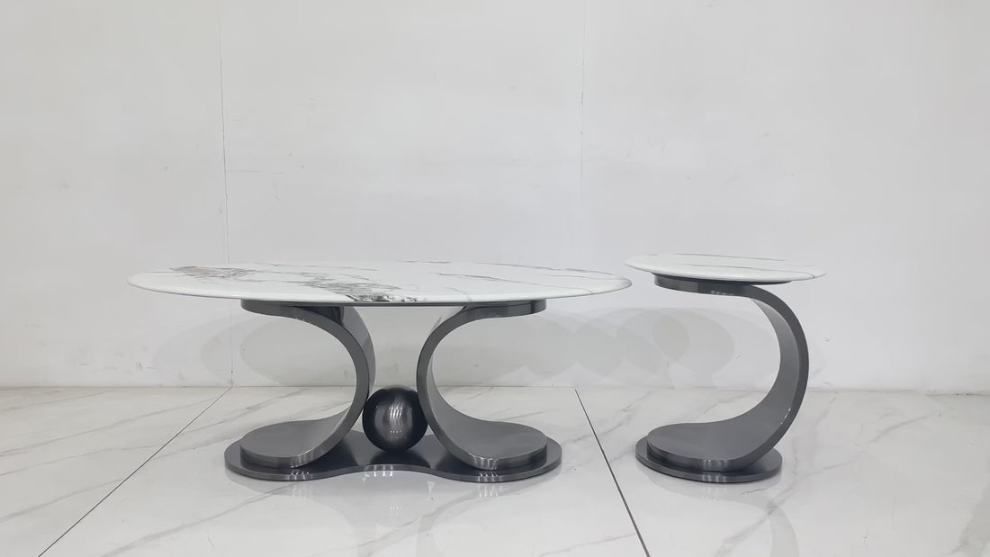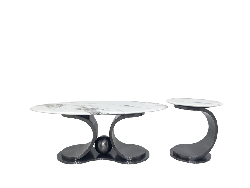 The Bullone Coffee Table Set combines bold design with refined luxury. Featuring shiny black stainless steel frames and 18mm thick marble tops, this duo brings sophistication and contemporary elegance to any space — from living rooms to luxury lounges.