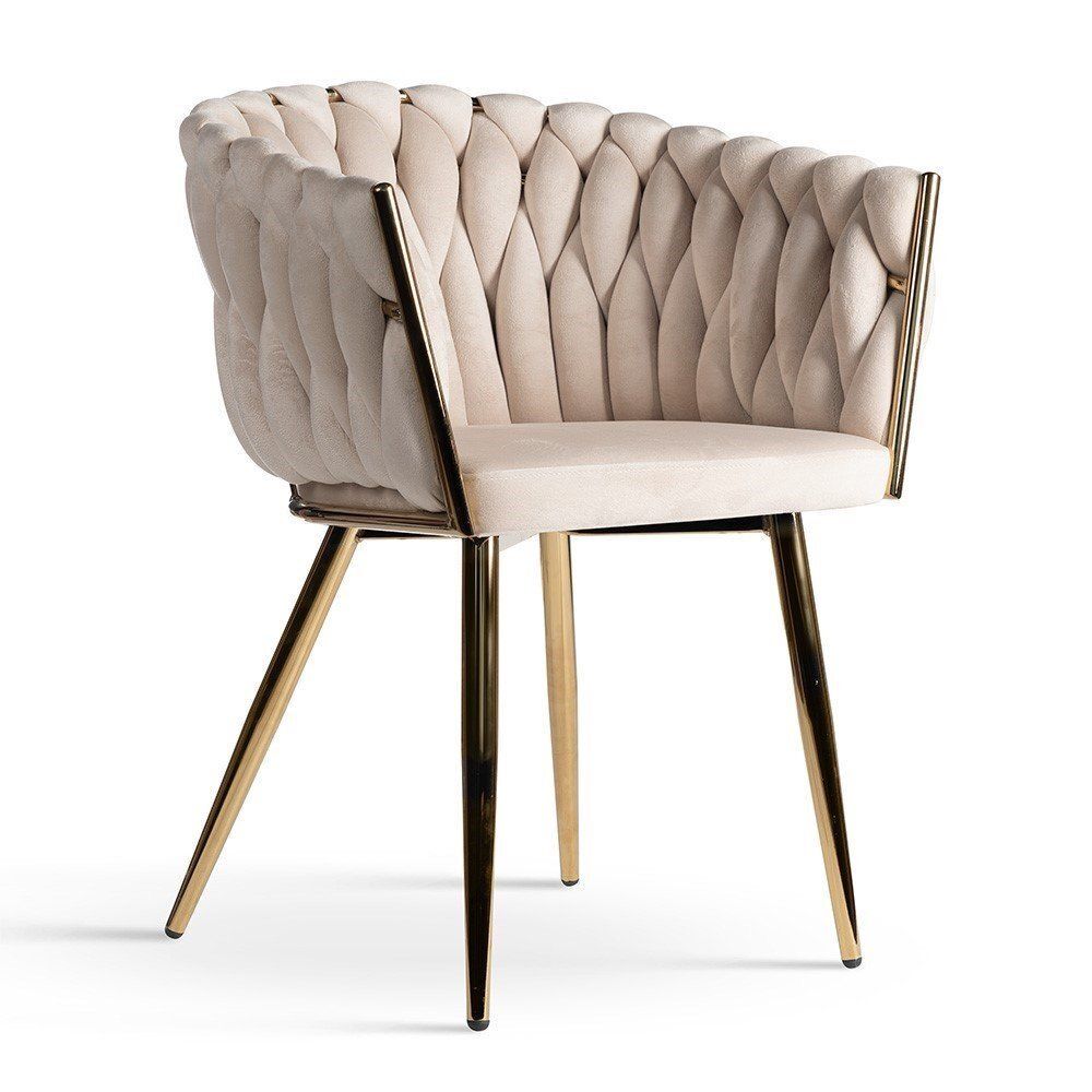 Introduce timeless elegance to your dining room with the Chez Velvet Barrel Chair in Cream. Plush velvet upholstery meets sleek metallic gold legs for a sophisticated, modern look.