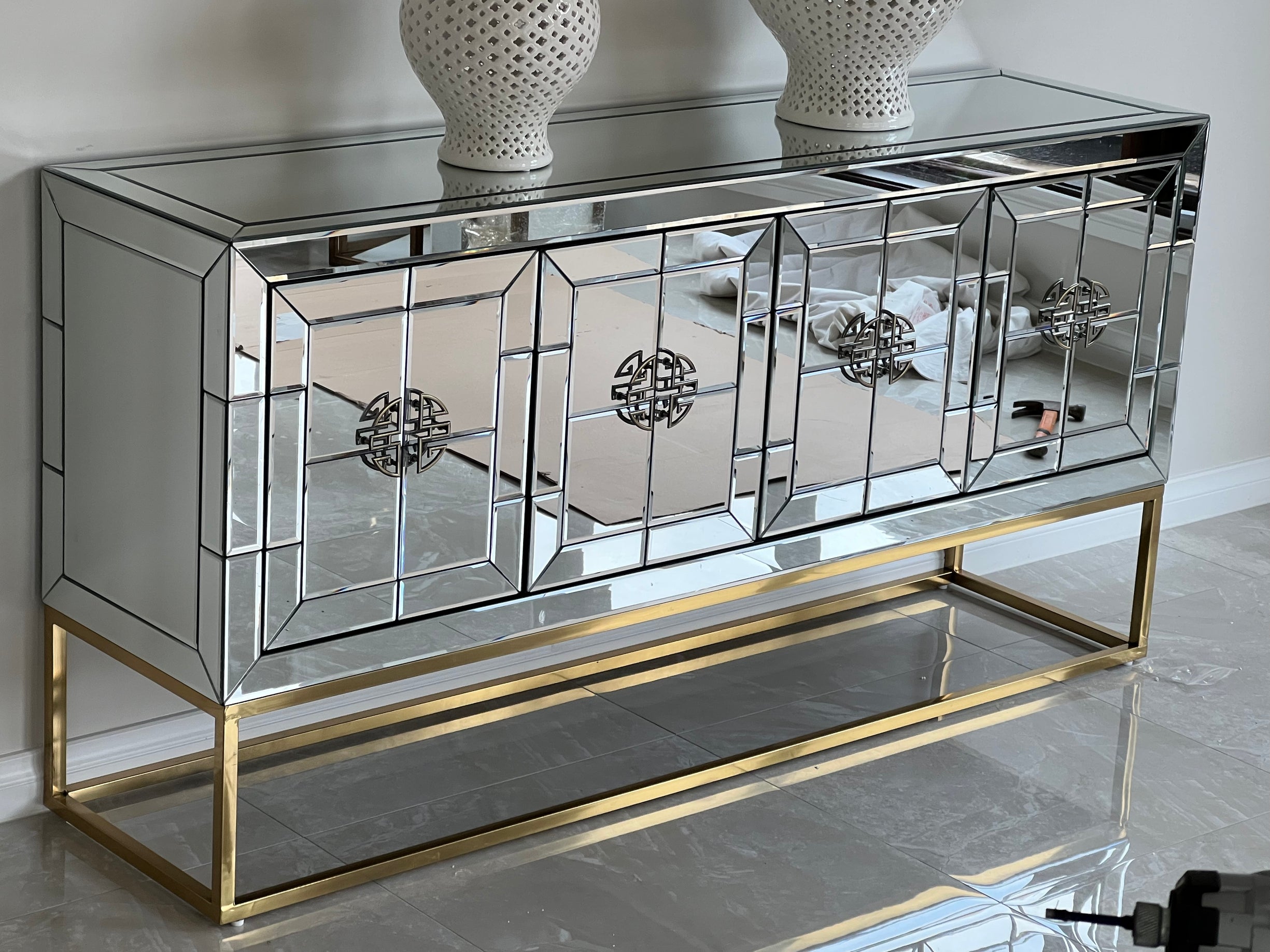 Crafted with a fully reflective mirror surface, this console table instantly brightens any room by bouncing natural and artificial light throughout your space. Its minimalist design complements modern, contemporary, and luxury interiors while making a striking statement.