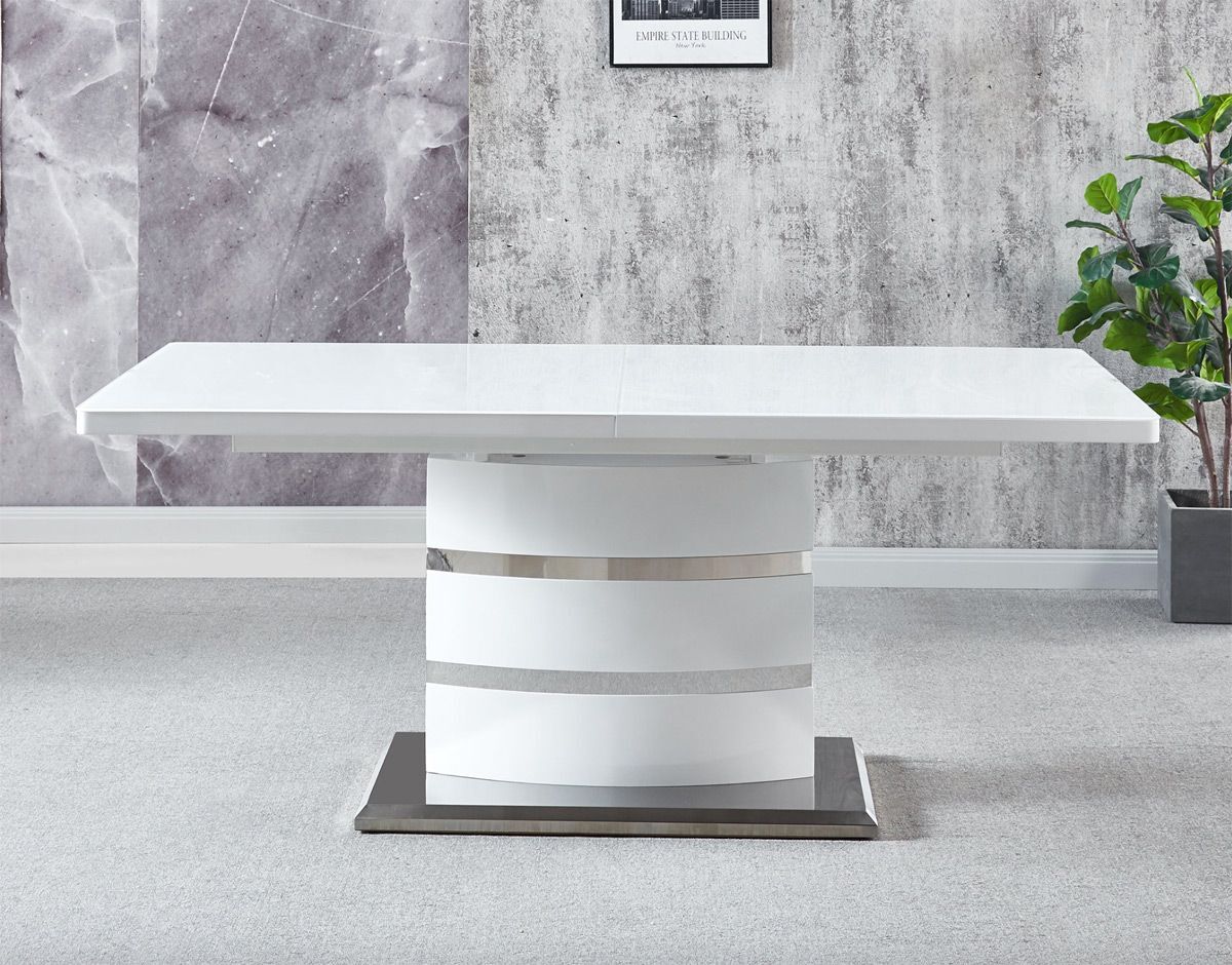 Clessidra High Gloss Extending Dining Suite – DotFurn (White Table + 8 Salsa Chairs in White, Grey, or Black)