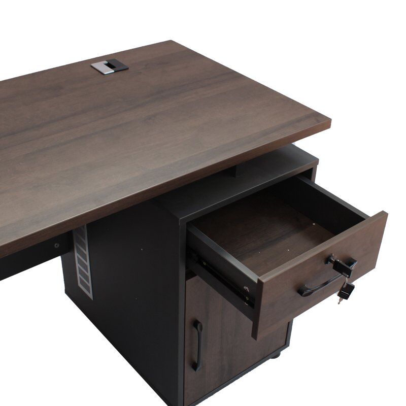 The Dot Furn Jerry Hicks Office Desk brings luxury, functionality, and modern style to any workspace. Featuring a rich dark brown finish, this desk is perfect for home offices, corporate workspaces, or study areas. With 1 spacious drawer on the right-hand side and a compartment with a door, it offers ample storage for all office essentials.