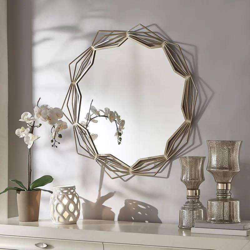 DotFurn Chigau Decorative Accent Mirror – Handmade Golden Geometric Design