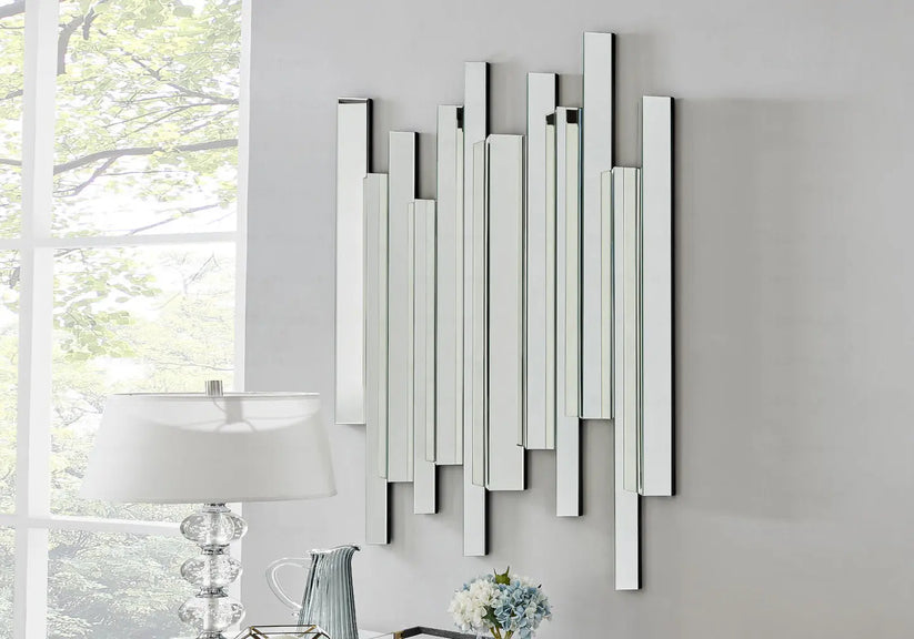 Expressive Artistic Design – Mirrored glass pieces arranged in a striking geometric pattern.