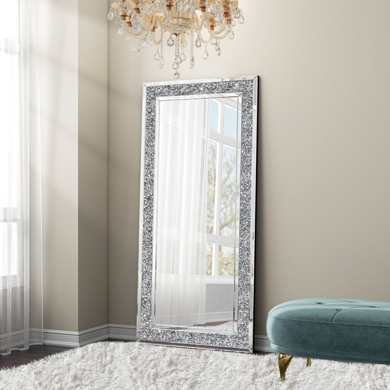 Bring brilliance and sophistication into your home with the Large Crystal Crush Diamond Wall Mirror (120x60cm). Designed with a shimmering crushed diamond inlay, this rectangular wall mirror is both functional and decorative.