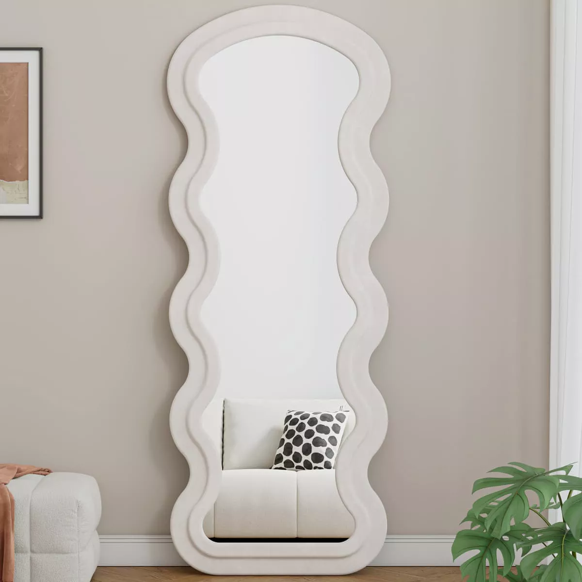 Elevate your space with the DotFurn Nami Modern Wavy Full-Length Mirror. Featuring a soft velvet frame and a playful wavy silhouette, this chic accent piece brightens bedrooms, living rooms, and dressing areas while adding an artistic modern touch.